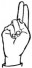 На ћирилици написано РАНИСЛАВА ВУКМИРОВИЋ састоји се из 19 слова [?]. Исписано ћириличном једноручном азбуком за глувонеме: